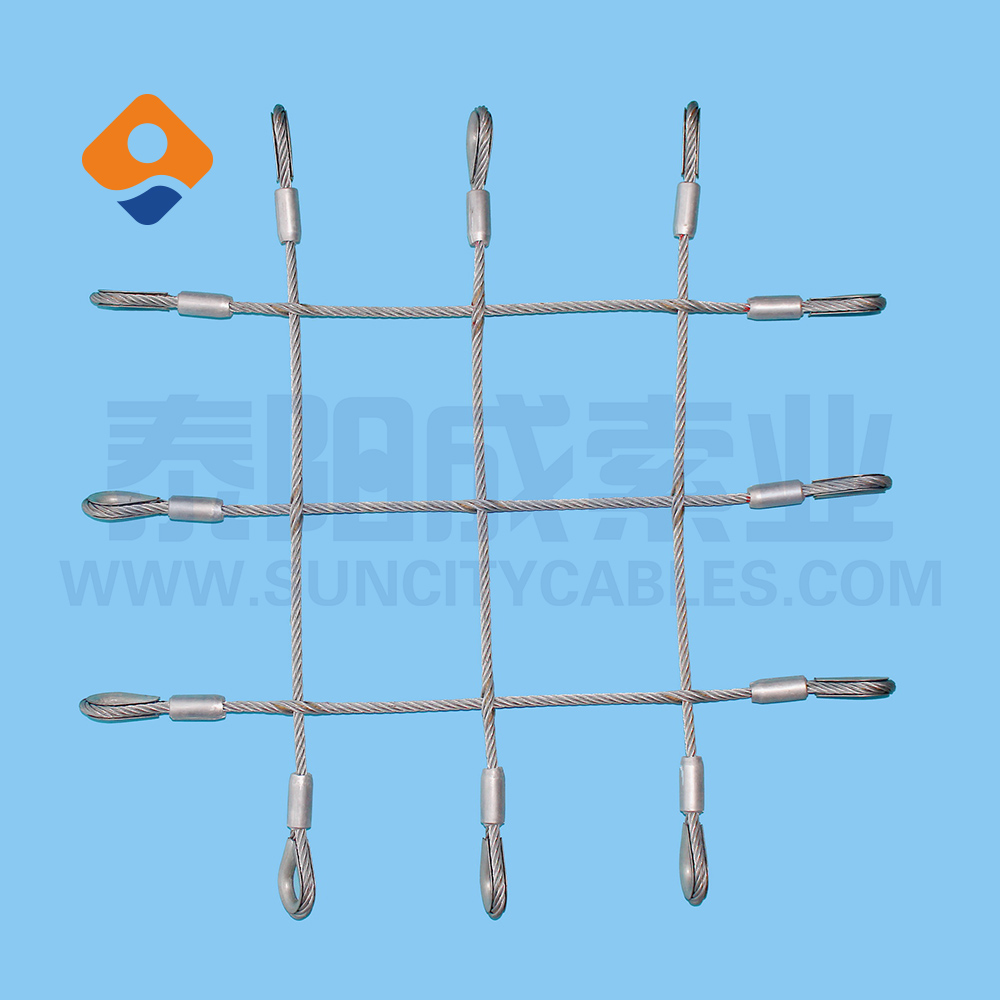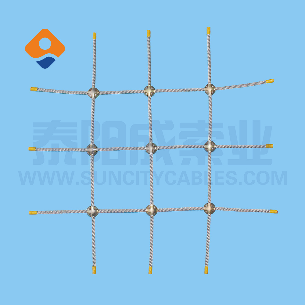 不锈钢索网:不锈钢索网由于自身具有不燃性,高强度,坚固,装饰效果生动,并能很好地对建筑结构物起保护作用,安装简便快捷,不同光线,不同环境,不同时间,不同观察其二度,其视觉效果十分丰富。产品耐用、不锈蚀、耐冲击,使用寿命可达30年以上。索网规格较多,从MW*MH=25*43~200*346等近二十种规格。钢丝绳一般采用材质为不锈钢316,结构为7*7,7*19系列。