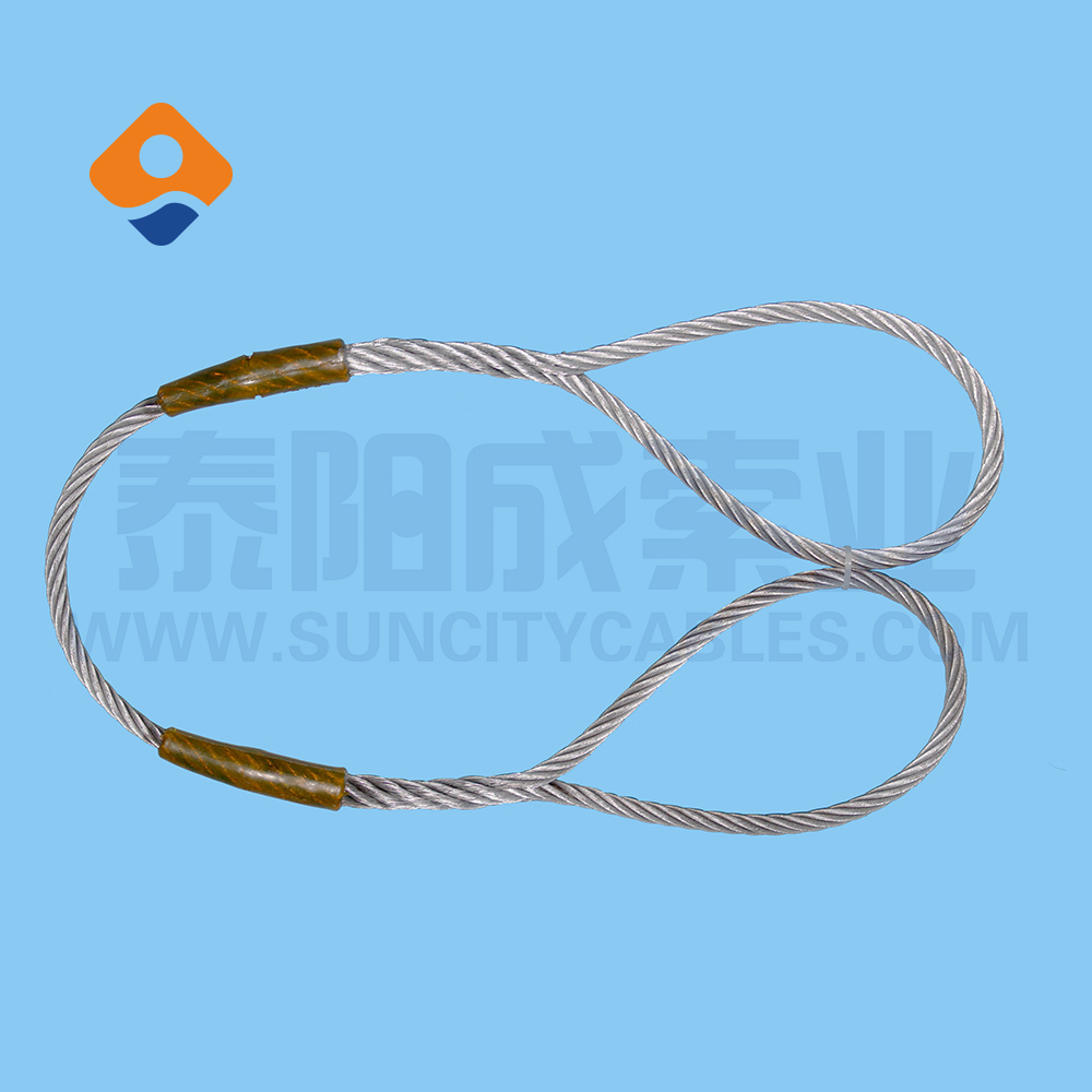 原料采用光面或镀锌钢丝绳,经手工插编而成的索具,索具环扣采用对缠式(佛兰人式)工艺,插编次数不少于三道,也可在插编部位末端处,进行包塑或者铝压等方式处理。使产品不仅安全、牢固,而且外观大方、漂亮、实用。一般钢丝绳索具采用的结构规格有:6*12,6*19,6*24,6*37等。
